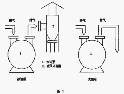第一,不采用排氣管道向上通過旋風分離器的走向,而是采用排氣管道向下走向(如圖1)。 |