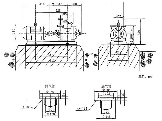 3、SZ型水環式真空泵與氣水分離器間的管路安裝: