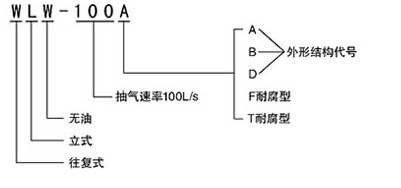 一、WLW系列無(wú)油立式真空泵的型號(hào)意義: