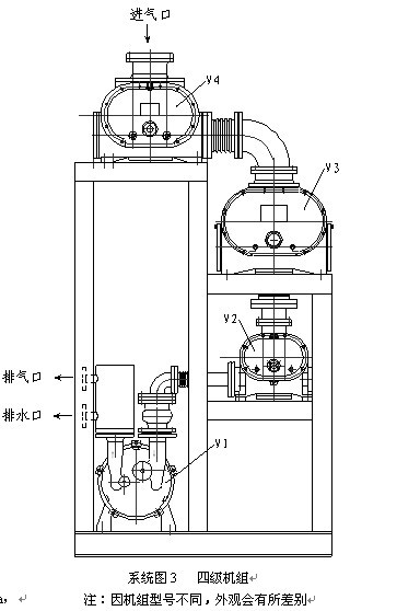 (三)、四級羅茨水環真空機組(羅茨泵+羅茨泵+羅茨泵+水環泵)