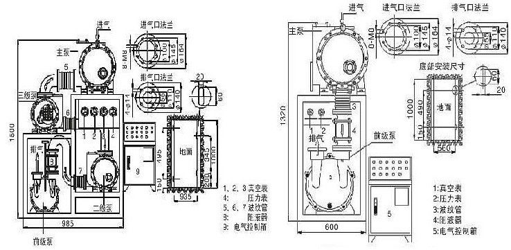 | 三、JZJBA系列羅茨水環真空機組的外形及安裝尺寸圖: |