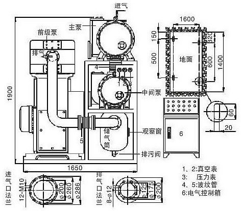 4、由于JZJW系列羅茨無油往復真空機組過流部分無油潤滑,在機組排氣口安裝尾氣收集裝置后,可以收集在高真空系統中無法凝固無法壓縮收集的氣體如苯、甲苯等。